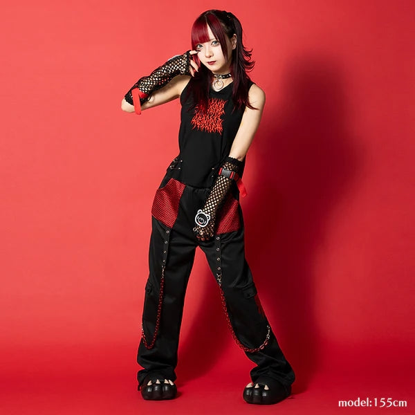 [ACDC RAG x Gloomy] Dark Gloomy Mesh Pants BK/RED